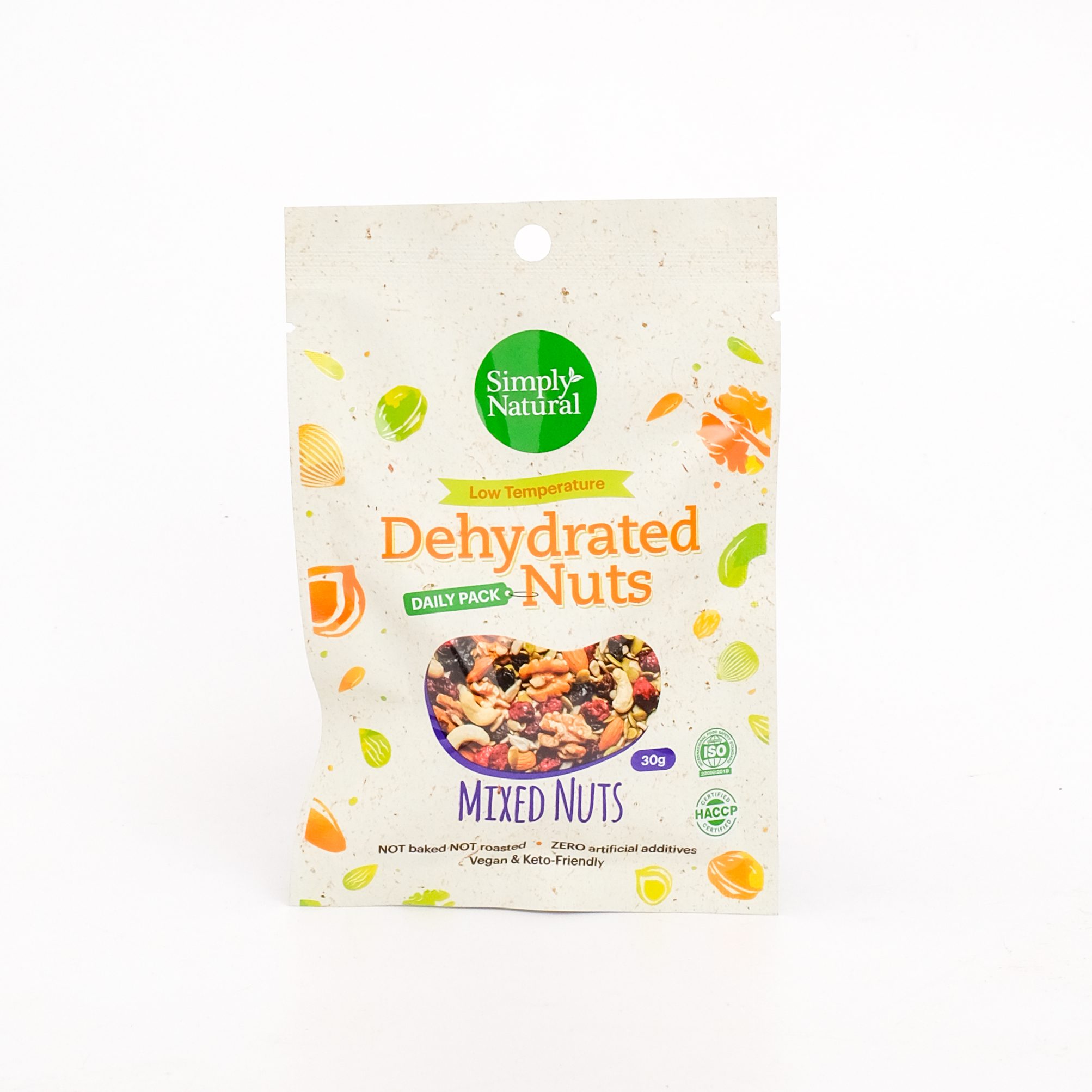 NOT baked NOT roasted, Simply Natural’s Dehydrated Mixed Nut is dehydrated at a low temperature of 60°C for at least 15 hours to retain the heat-vulnerable ‘good’ fats present in nuts. It is made in ZENXIN’s very own NASAA, ISO22000: 2018 & HACCP certified facility, with carefully selected premium quality ingredients, and guaranteed FREE from artificial additives, preservatives and colourings. You may taste the natural goodness of the unsalted nuts, seeds & dried fruits, and we encourage you to incorporate them as part of your healthy diet. Less heaty, more goodness, definitely one of the best vegan & keto-friendly snacks of choice! Now comes in a pocket-sized packaging that contains a single serving of nuts for your daily need!