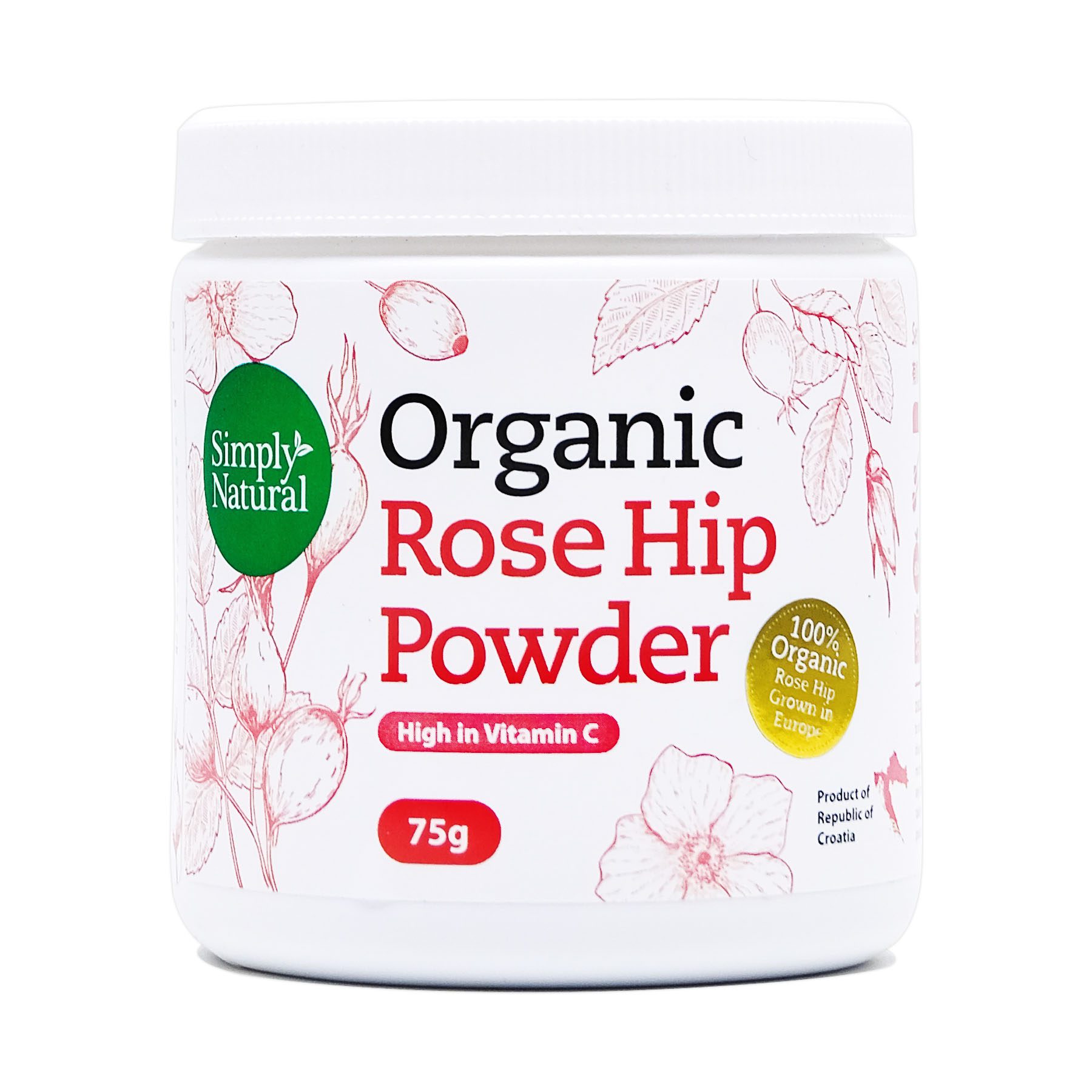 Simply Natural Organic Rose Hip Powder is made from nothing but 100% certified organic rose hip grown in Europe and harvested at a time when it contains the highest concentration of vitamins and valuable ingredients. Rose hip is a powerful source of Vitamin C, Vitamin E, Vitamin K, pectin, beta-carotene and bio-flavonoids. It contains 60 times more vitamin C than orange. Two tablespoons of rose hip powder is approximately equivalent one serving (~28g) of fresh rose hips making it a quick way to reap the benefits of this fabulous super-food by incorporating it into your cooking either in protein shakes, herbal drinks or teas or even in homemade beauty care products.