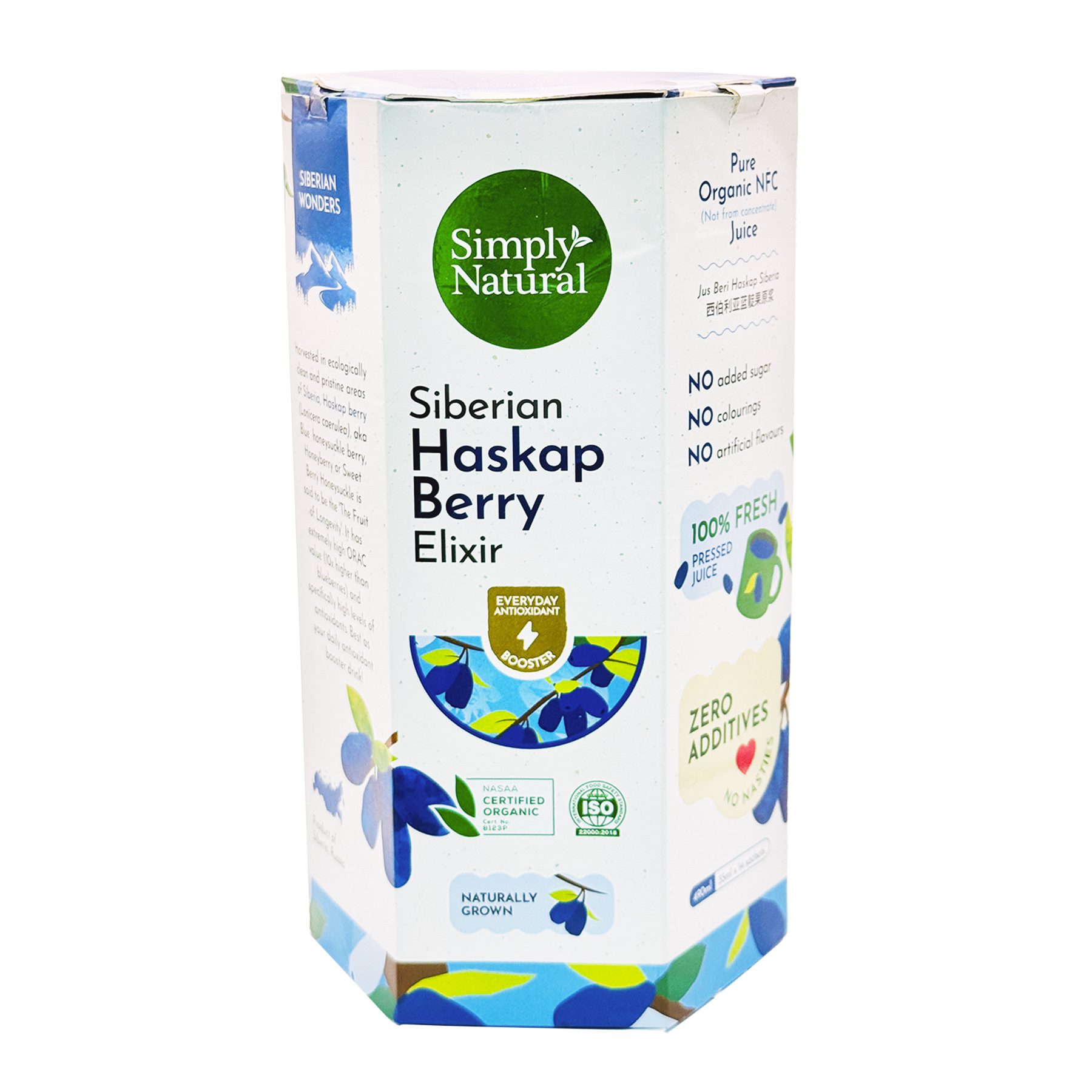 Grown in Siberia region in Russia, Simply Natural Siberian Haskap Berry Elixir is made from haskap berries through NFC (Not from concentrate) juicing technology. Absolutely free from artificial flavourings, colourings and added sugar, this vegan-friendly elixir is significantly high in antioxidants for vision, heart, brain and immune health. Haskap berries have an extremely high ORAC value and specifically they have high levels of Anthocyanin, Polyphenols and Bioflavonoids.
