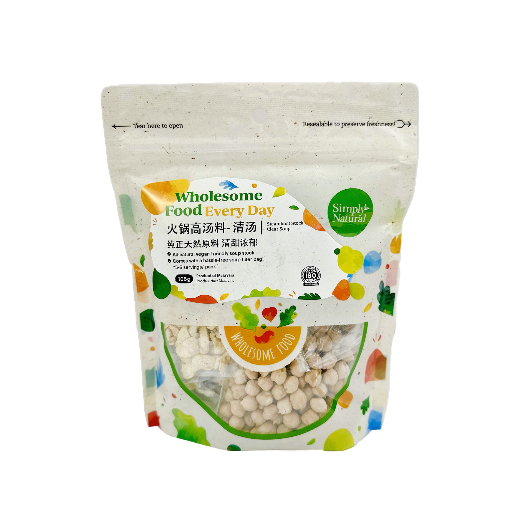 Crafted from simple, ready-made stock, Simply Natural Clear Soup Steamboat Stock boasts a blend of wholesome natural ingredients, creating a light and delicate flavor that seamlessly complements the original taste of steamboat ingredients. With a commitment to purity, there’s no added salt; instead, the rich and natural flavors arise from the quality of the ingredients themselves. Elevating the cooking experience, it comes complete with a non-woven soup filter bag, ensuring a hassle-free preparation process. Adding a personal touch, the recipe hails from the kitchen of Miss Theresa Kok at OriginalFood Kitchen, infusing the stock with a unique and expertly curated flavor profile. Certified organic by NASAA and ISO 22 000: 2018.